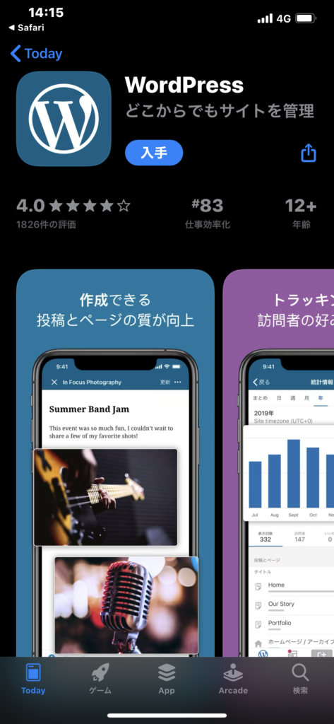iPhoneで投稿できないかなと思って検索したら、「WordPressアプリ」があるではないですか!もしかしてこれデザイン作るのも出来ちゃいそうな感じですね!